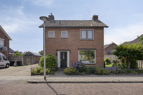 De tuin is strak aangelegd en functioneel ingericht. Direct achter de woning ligt een groot gazon met nette bestrating en strakke borders. Tussen het gazon en de oprit bevindt zich een vrijstaande overkapping, ideaal voor fietsenstalling, opslag of als beschutte buitenplek. In de hoek van het gazongedeelte van het perceel is een terras met prachtig uitzicht over de landerijen gerealiseerd.