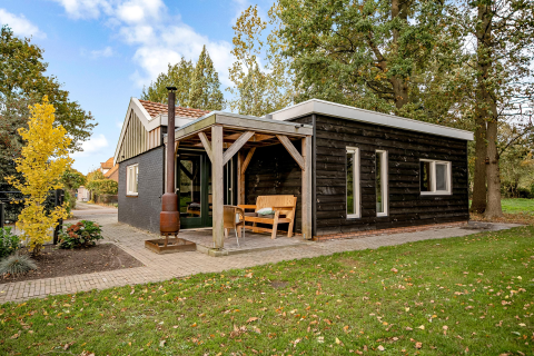 • Strak aangelegde tuin met gazon, schapenweide, terras en vrijstaande overkapping