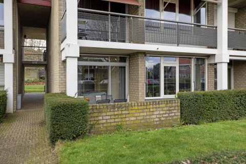 De tuin is strak aangelegd en functioneel ingericht. Direct achter de woning ligt een groot gazon met nette bestrating en strakke borders. Tussen het gazon en de oprit bevindt zich een vrijstaande overkapping, ideaal voor fietsenstalling, opslag of als beschutte buitenplek. In de hoek van het gazongedeelte van het perceel is een terras met prachtig uitzicht over de landerijen gerealiseerd.